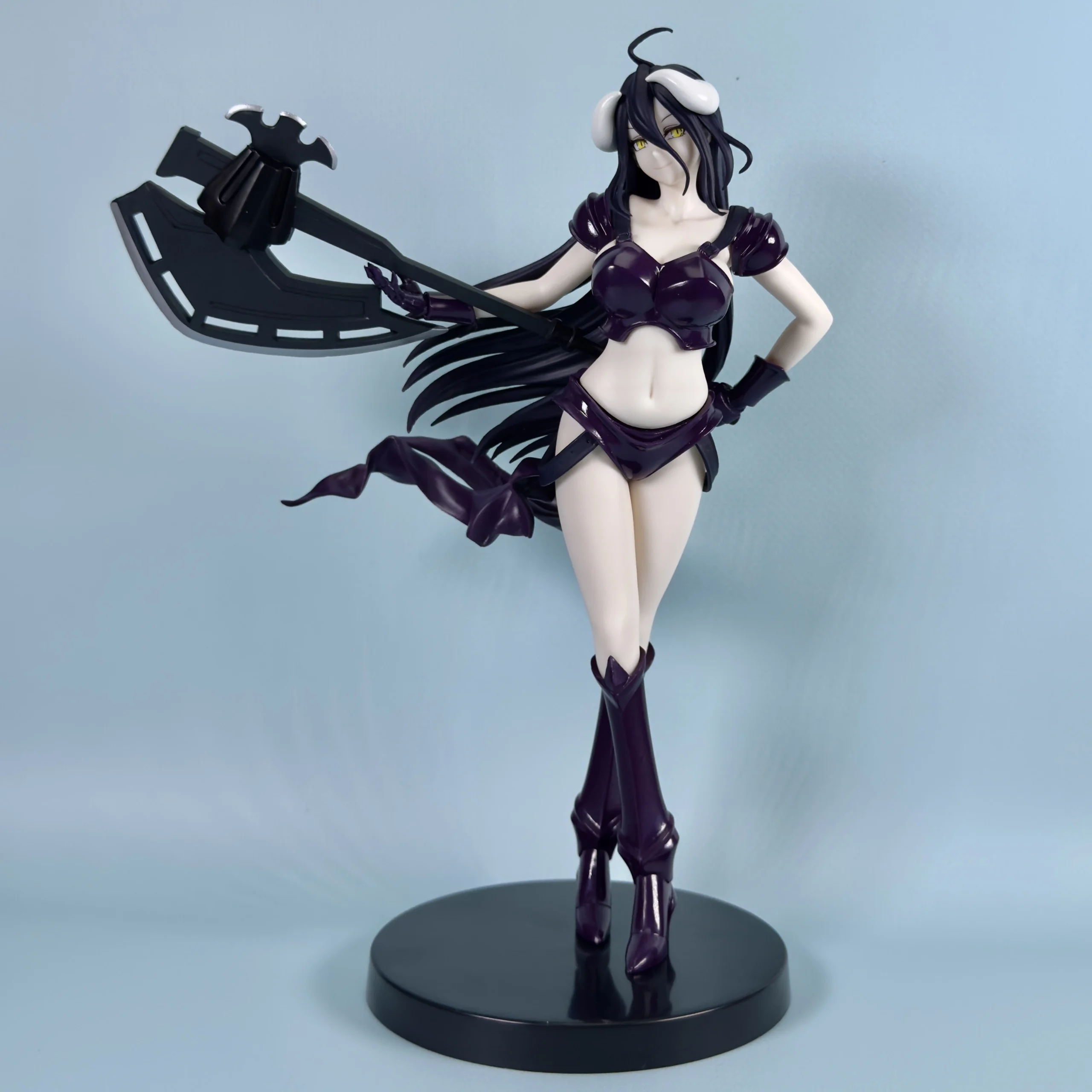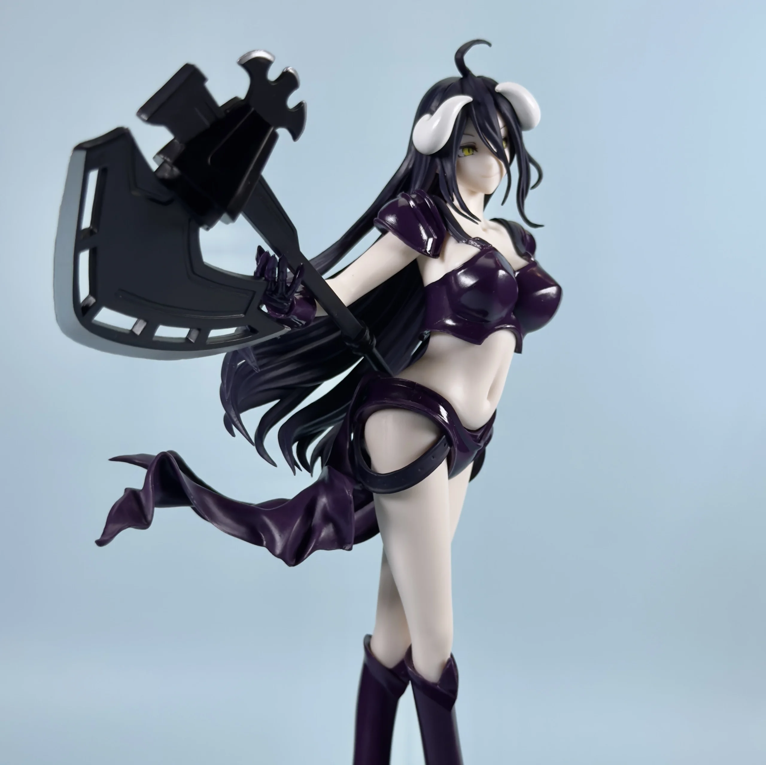 У цій версії Альбедо одягнена у броню, стилізовану під бойове бікіні — глибокий відтінок металевого фіолетового кольору надає їй ефектного вигляду. Вона тримає величезну бойову сокиру з упевненістю справжнього воїна, а її поза — злегка зухвала, але водночас елегантна. Довге чорне волосся, що розвівається за спиною, додає динаміки, створюючи враження, ніби фігурка оживає просто на очах.